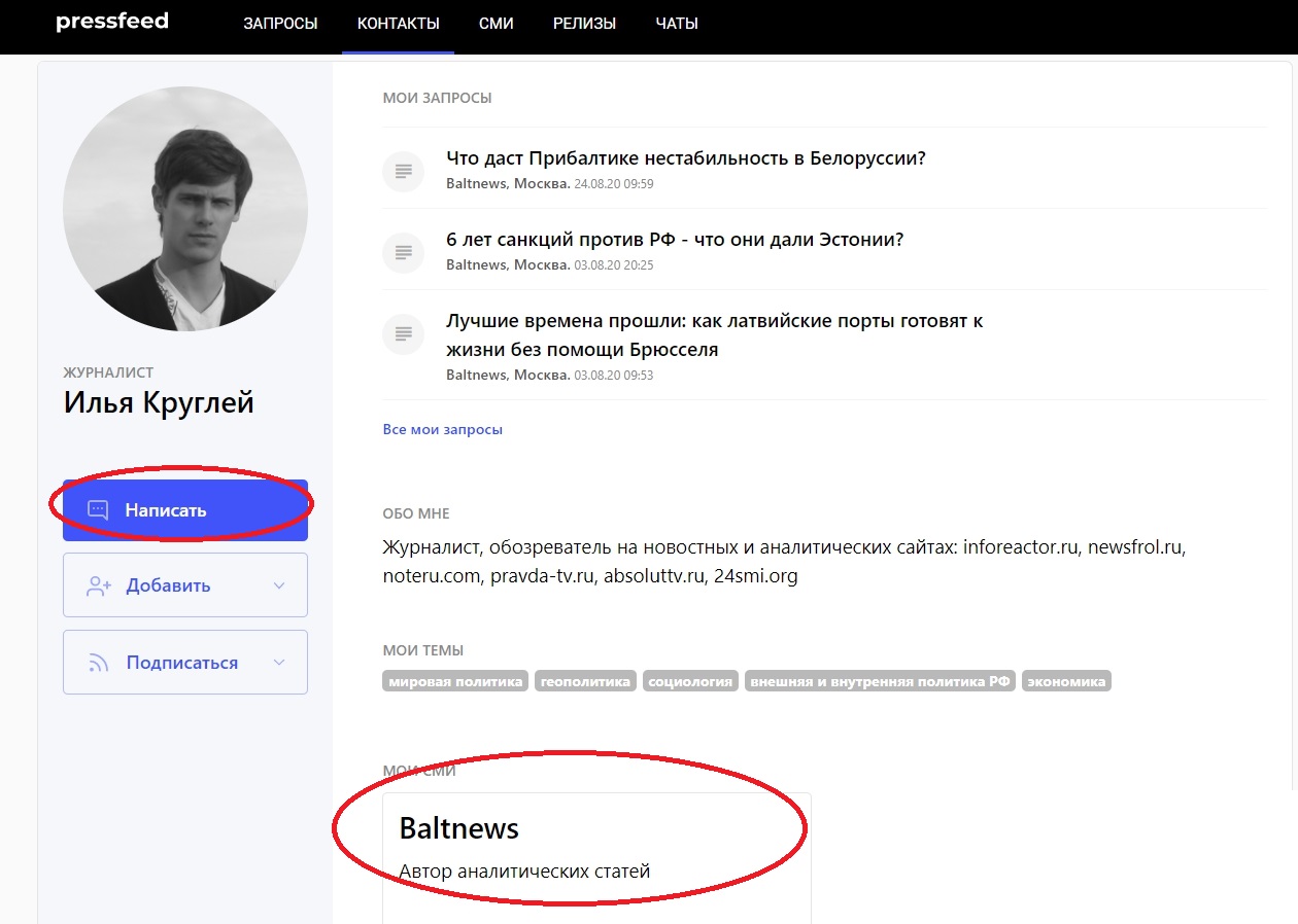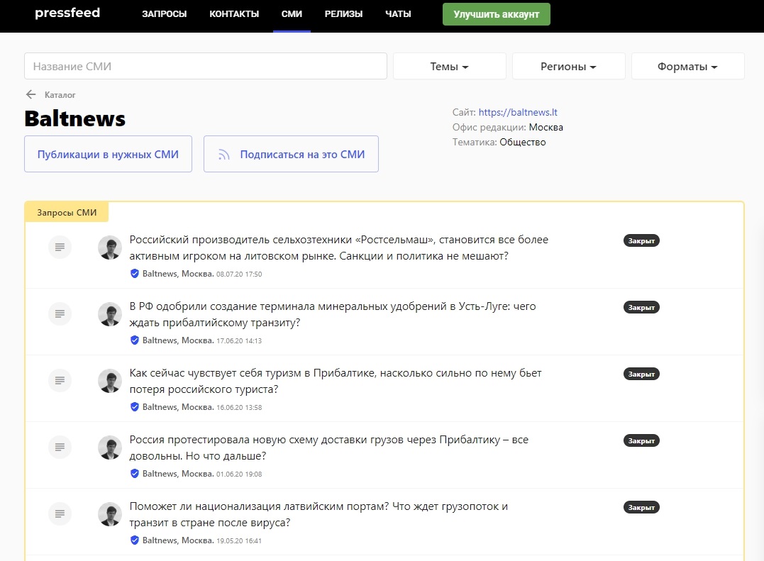 Также на Pressfeed запросы выкладывает издание Baltnews — там пишут только о событиях в странах Балтии. Я отвечал на несколько запросов.