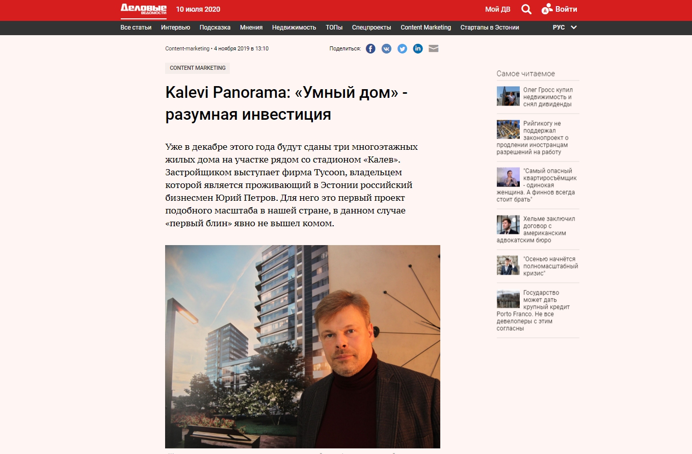 В эстонских СМИ я уже опубликовал достаточное количество материалов, чтобы меня узнавали «в лицо», а бренд Kalevi Panorama Residence был знаком практически всем в Таллине.