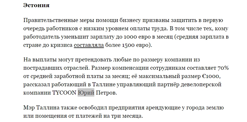 Для «Секрета фирмы» (посещаемость — около 1,3 млн визитов в месяц) я рассказал, какие меры поддержки бизнеса во время коронавируса предложило правительство Эстонии.
