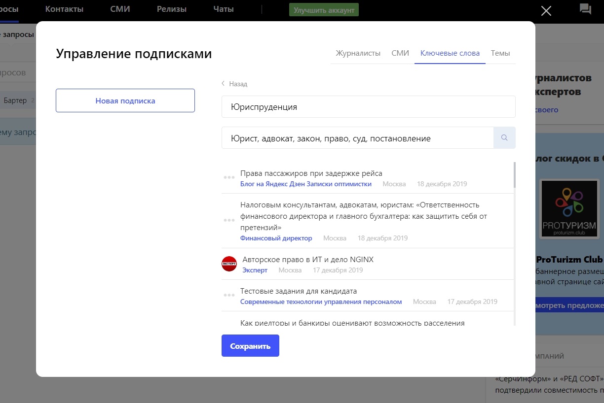 Всего на сервисе работает 24 юридических издания. Связаться с редакцией любого из них можно во внутренних чатах Pressfeed. Также можно подписаться на запросы конкретной площадки, чтобы точно не пропустить ничего важного.