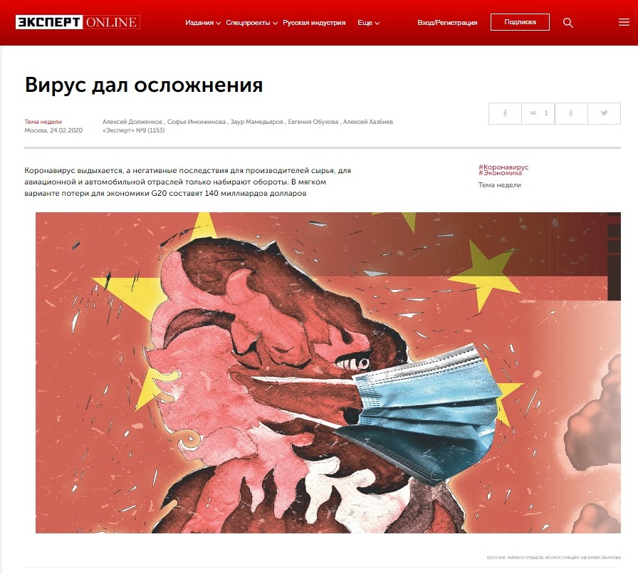 Материал “Вирус дал осложнения” на сайте издания “Эксперт” по итогам работы с Pressfeed