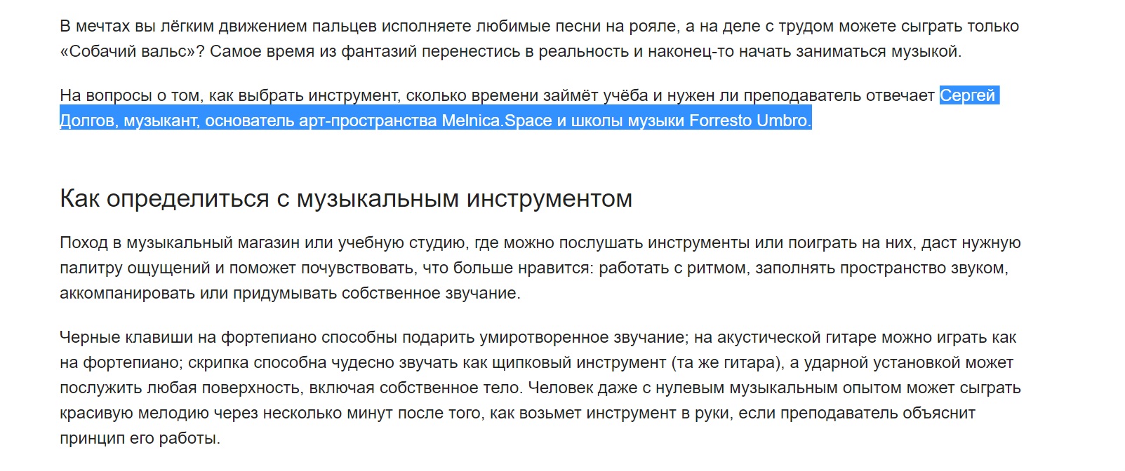 В итоге получился не комментарий, а полноценный материал от нас, как научиться играть на музыкальных инструментах. После выхода этой публикации трафик на сайт вырос примерно в 2 раза.