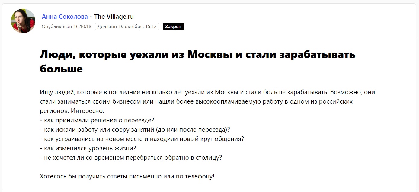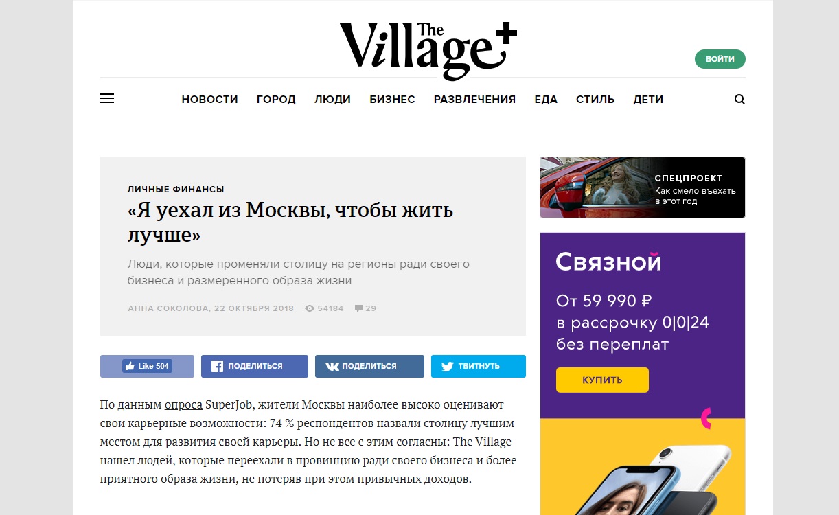 Этот материал был посвящен людям, которые оставили свою успешную работу в Москве и переехали жить в провинцию.