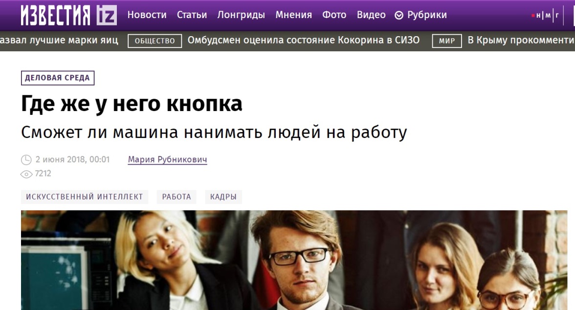 В ответе на запрос об искусственном интеллекте в сфере HR мы рассказали изданию о нашей технологии автоматического анализа поведения сотрудников.