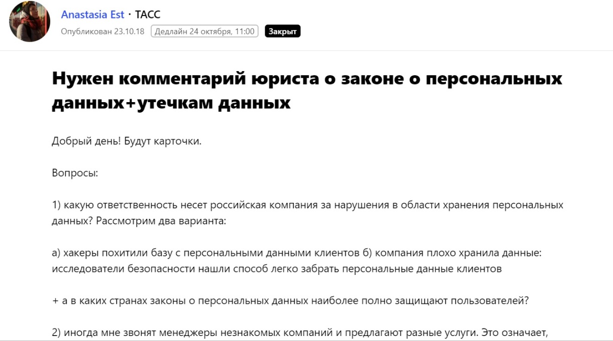 Pressfeed дает возможность выйти не только на деловые издания, но и на узкопрофильные. Например, через сервис мы давно и плодотворно сотрудничаем с площадкой Rspectr.com ― это портал по вопросам связи, информационных технологий и массовых коммуникаций. Мы отвечали минимум на 5 запросов от редакции издания, и все наши ответы были приняты и попали в материал.