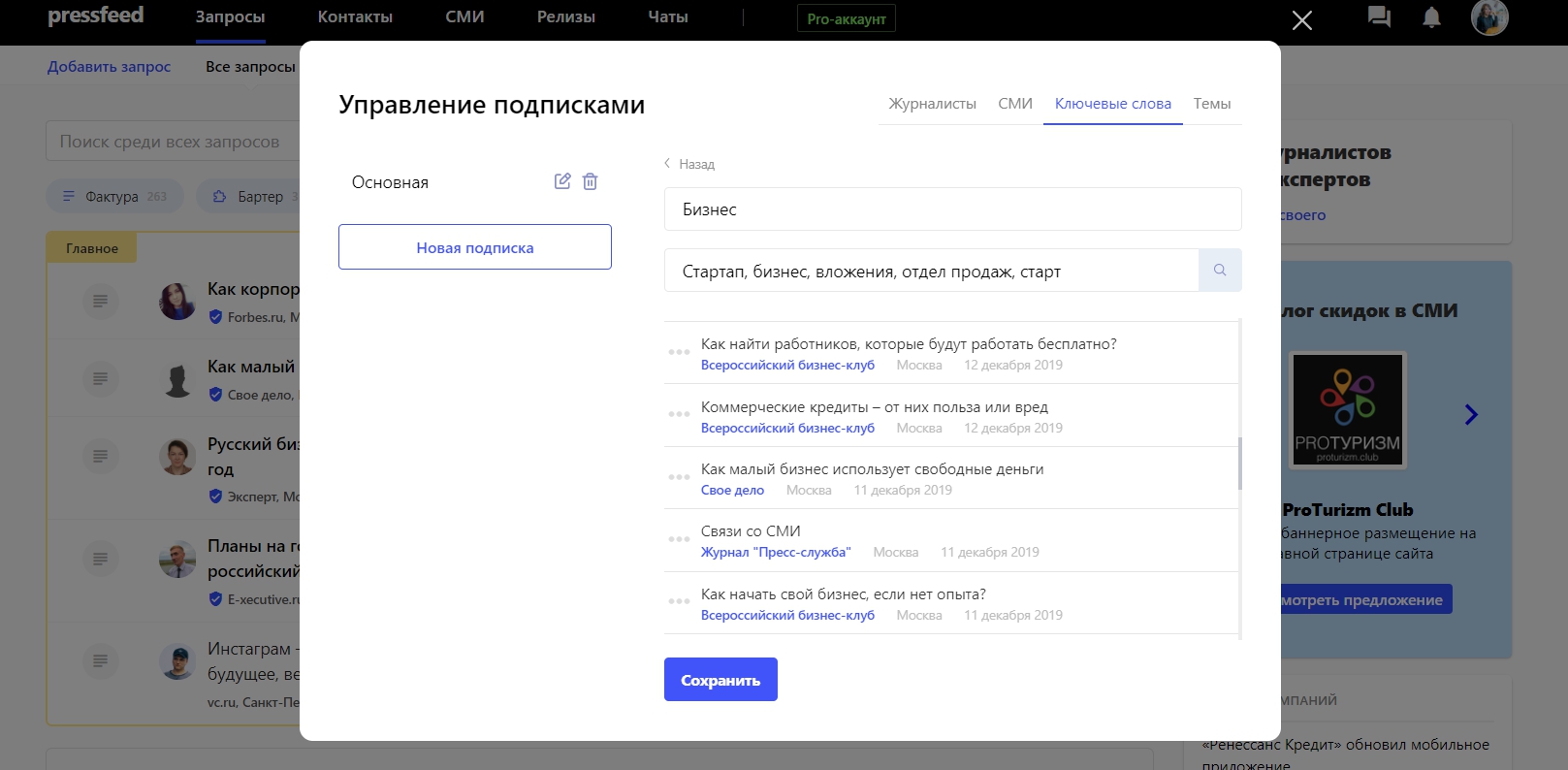 Более того, мы даже сами размещали на Pressfeed один запрос, чтобы найти экспертов для нашего YouTube-блога.
