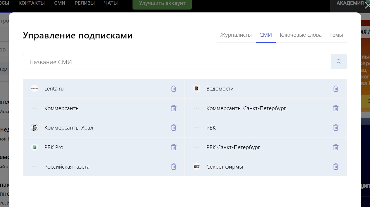 Как я уже сказала, теперь в приоритете издания первого эшелона. Чтобы не пропускать запросы от них, можно сформировать подписку по конкретным изданиям: