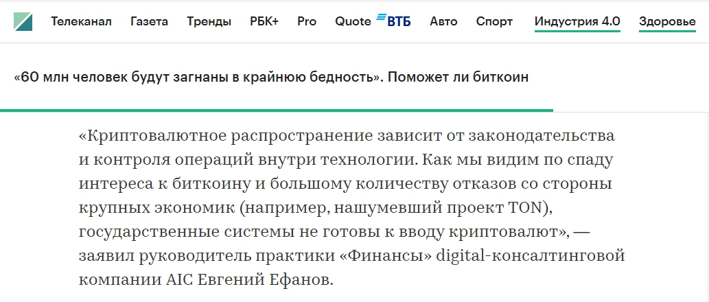 Руководитель практики «Финансы» высказался по поводу криптовалют. Вновь обратите внимание, что мы обязательно обозначаем, что AIC — это digital-консалтинговая компания.
