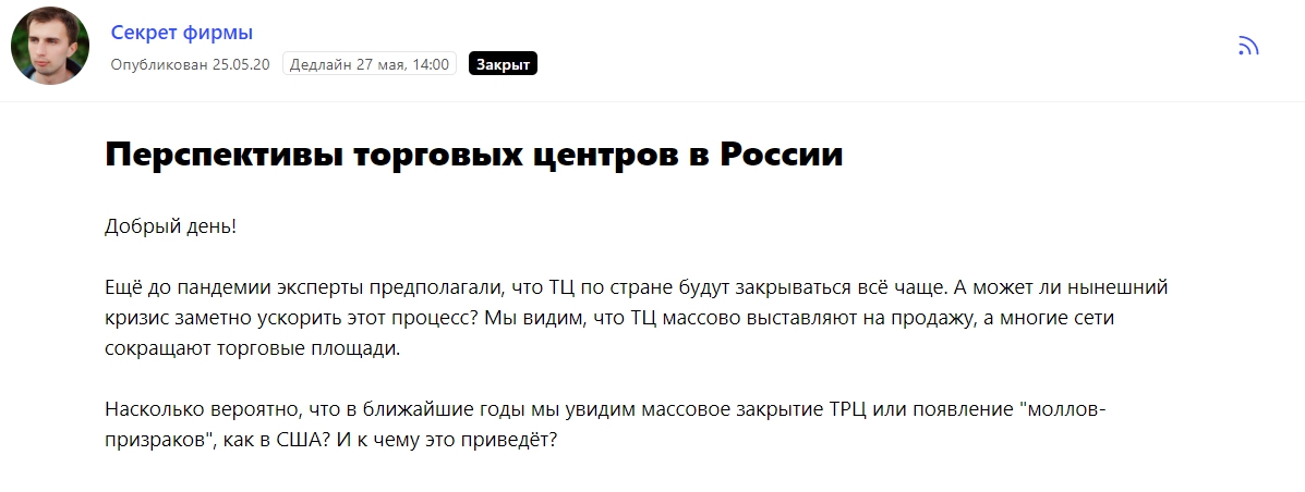 Например, для «Секрета фирмы» писали комментарий о том, как трансформируются торговые центры после пандемии.