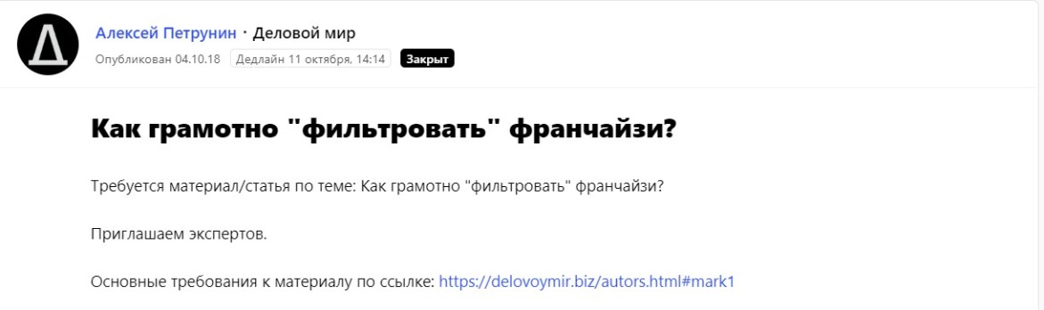 Например, мы реагировали на запрос от бизнес-ресурса «Деловой мир». Тематика была наша на 100%.