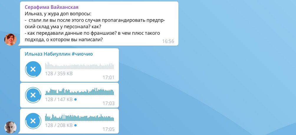 Над каждым текстом (неважно делаем мы напрямую или через Pressfeed) мы работаем втроем — автор, редактор и пиарщик. Поначалу у нас был час в неделю на общение с Ильназом, из которых рождались по 2−3 статьи. Позже мы заменили интервью на аудиозаписи. Чтобы сэкономить время, просили Ильназа записать аудиоответ и формировали текст.