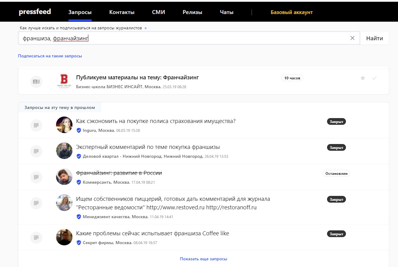 Например, давайте посмотрим, что журналисты спрашивают о франшизах и франчайзинге: