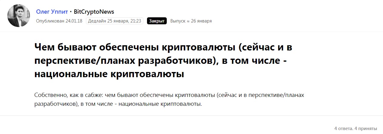 Поэтому подготовка текстов, касающихся того же блокчейна, давалась мне легко. Зачастую даже не было необходимости обращаться к экспертным мнениям, достаточно было изучить аналитику и обзоры по своей тематике. В случае же, когда все-таки помощь эксперта была необходима или формат текста предполагал наличие мнения спикера, я мог просто «расшарить» свой вопрос в социальных сетях или напрямую там написать любому эксперту — почти всех я знал лично.