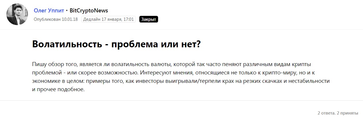 Сервис журналистских запросов Pressfeed мне понадобился лишь год назад, когда я хотел получить больше альтернативных мнений в вопросе про волатильность для подготовки текста для bitcryptonews.ru. У меня были свои эксперты по этому вопросу, но я решил, что мне нужны в тексте новые имена и мнения. Правда, сначала большую ставку на сервис не делал, но быстро понял — это работает