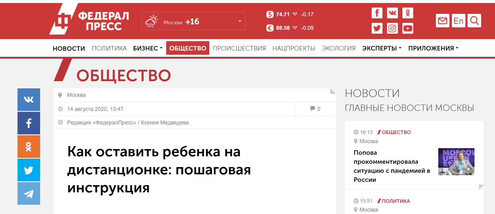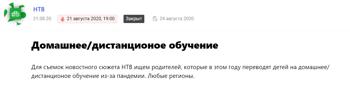 Как всегда это бывает на телевидении, отвечать на запрос нужно было быстро и с дедлайном «вчера». Я оперативно нашла для продюсера ученицу, семья которой согласилась на съемки у них дома, причем в Краснодаре — к счастью, там есть корпункт. Также к нам в офис приехала съемочная группа федерального телевидения. По забавному совпадению, другой участник программы, которого продюсер нашел самостоятельно, тоже учился в Домашней школе «ИнтернетУрок». Сюжет назывался «Онлайн или офлайн: школьникам многих регионов разрешили учиться дистанционно».