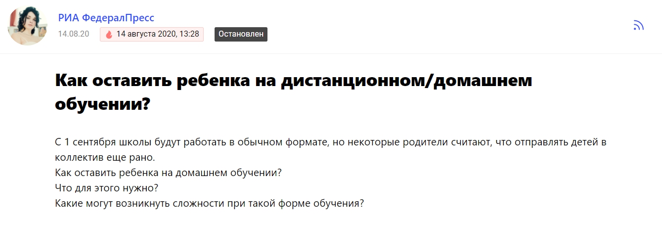 В другой раз я давала комментарий как представитель компании для РИА «ФедералПресс». Вопрос вновь был посвящен домашнему обучению.