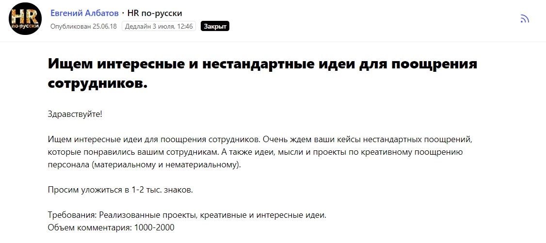 Кроме того, мы с радостью отвечаем на запрос от HR-изданий. Например, редактор «HR по-русски» спрашивал о небанальных вариантах поощрения сотрудников.