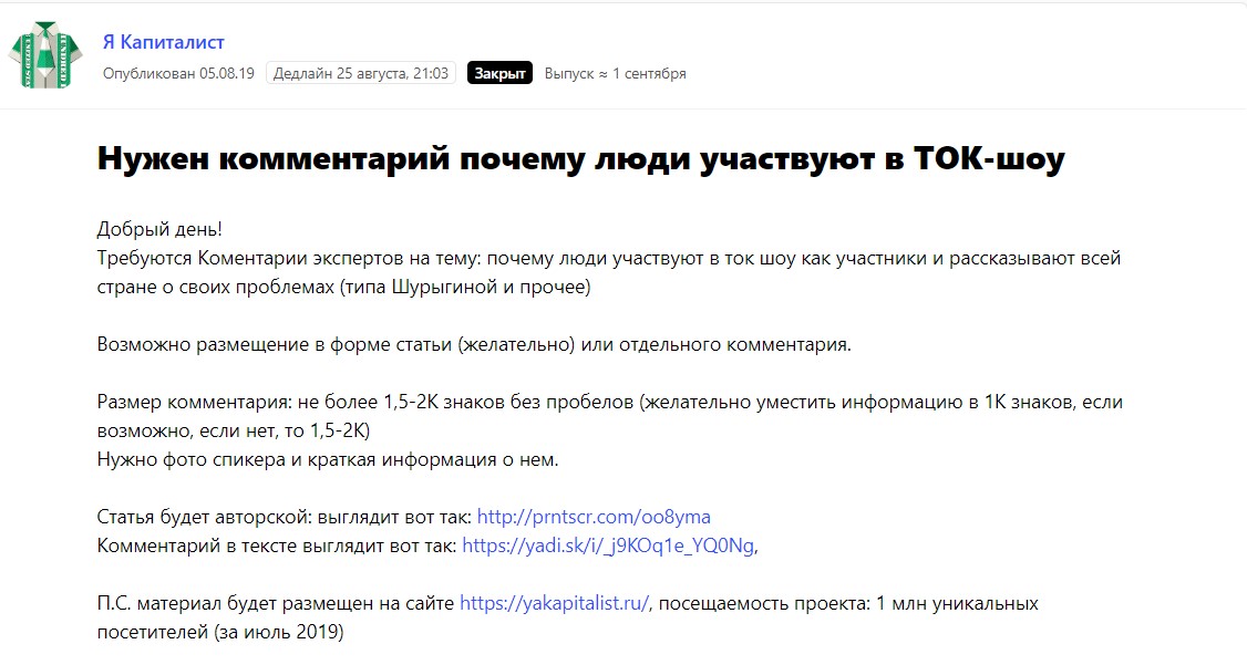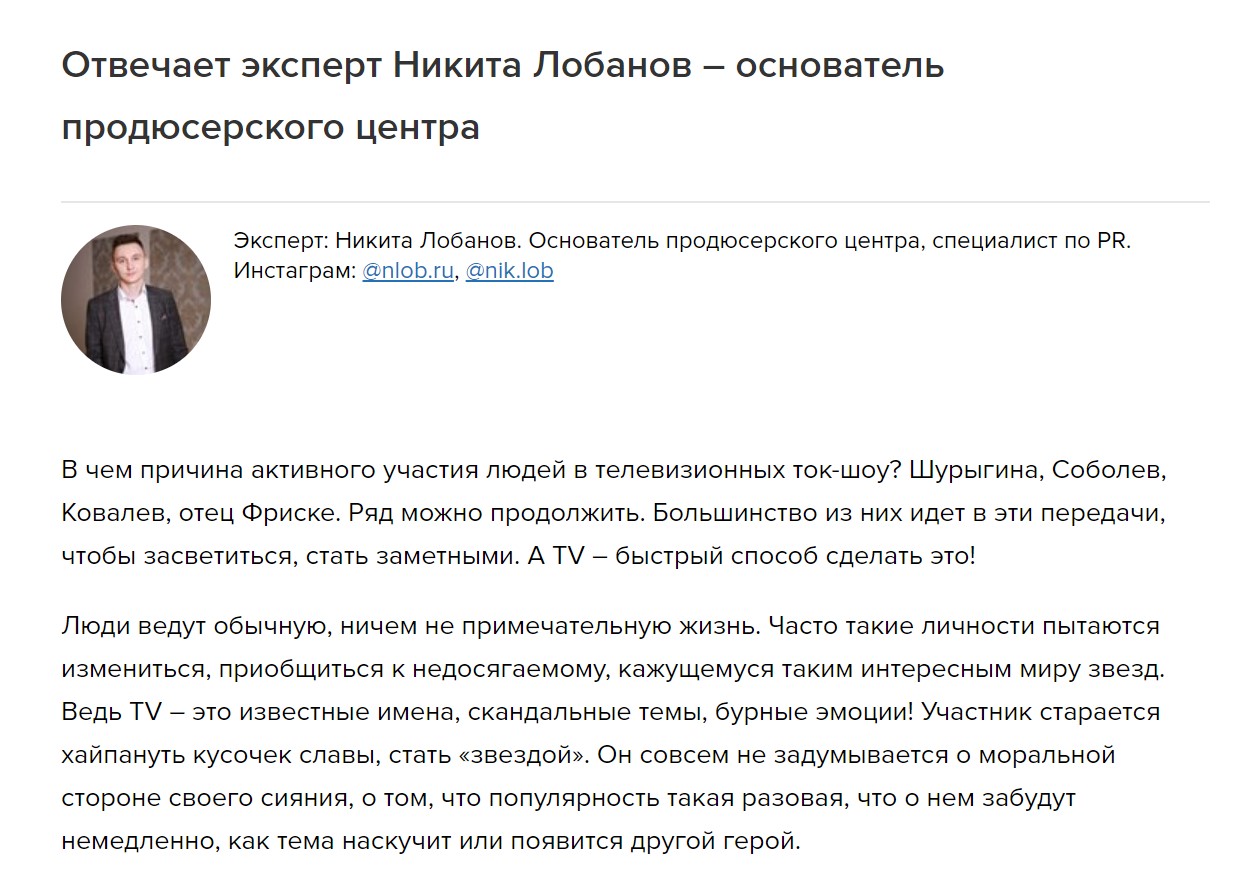 Совсем недавно ответили на запрос от относительно новой площадки «Я Капиталист». Журналист спрашивал, почему некоторые люди так хотят попасть в скандальные ток-шоу на федеральных каналах.