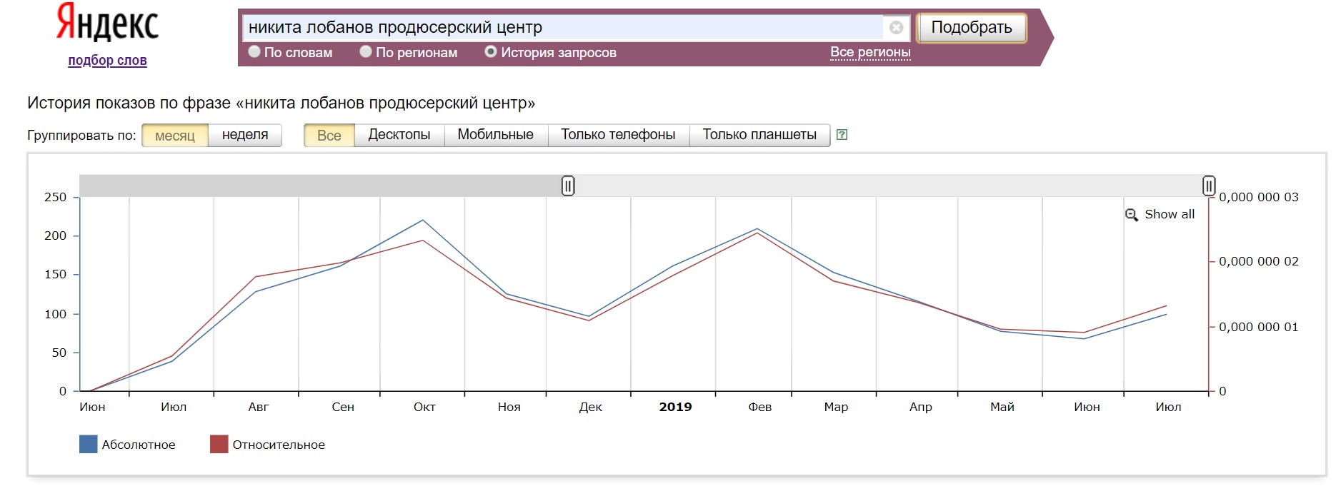 Статистика по запросу «Никита Лобанов продюсерский центр»