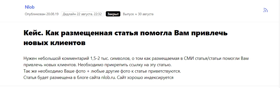 Кстати, еще мы используем Pressfeed не только как эксперты, но и как редакция ― сами размещаем там запросы, когда собираем фактуру для наших статей в блоге. Например, искали кейсы, когда статья в СМИ привела реальных клиентов.