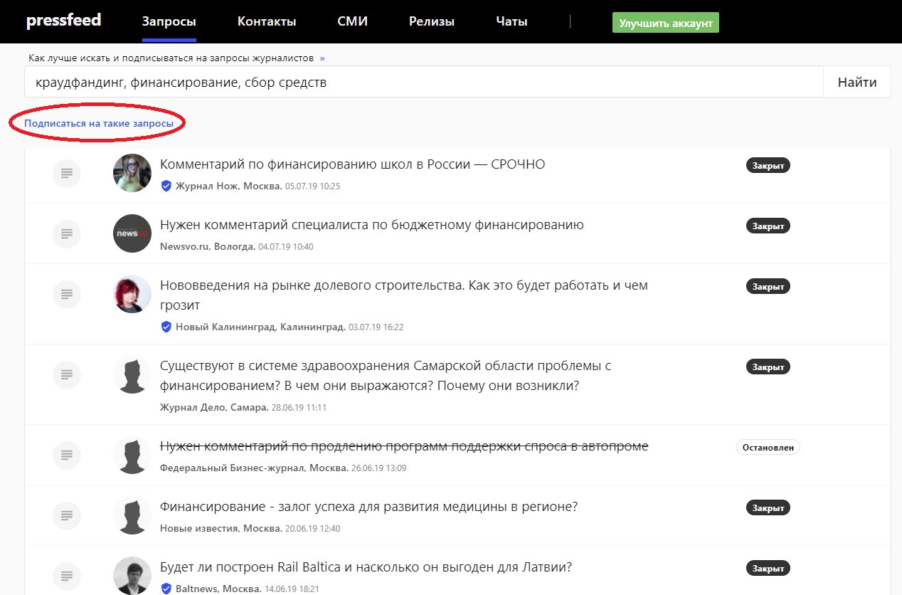 Сервис журналистских запросов Pressfeed ㅡ в своем роде социальная сеть для журналистов и пиарщиков, которая значительно облегчает коммуникацию между ними.