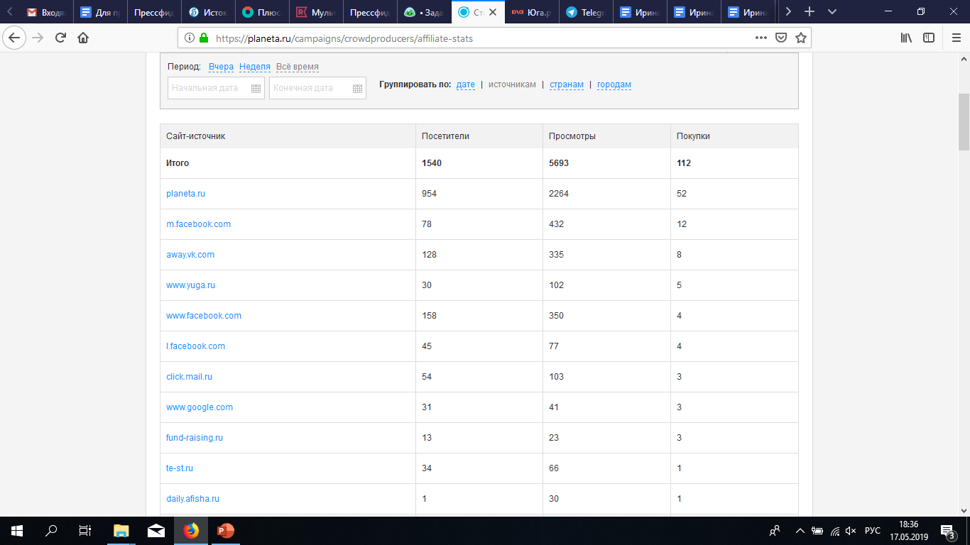 На скрине видно, что покупки шли непосредственно с крауд-площадки, из социальных сетей, а также из переходов с портала Южного региона «Юга.ру», с сайта «Теплицы социальных технологий», с площадки «Афиша Daily».
