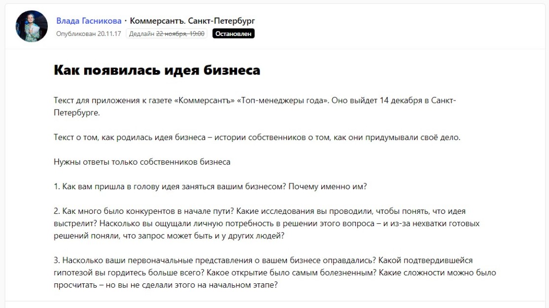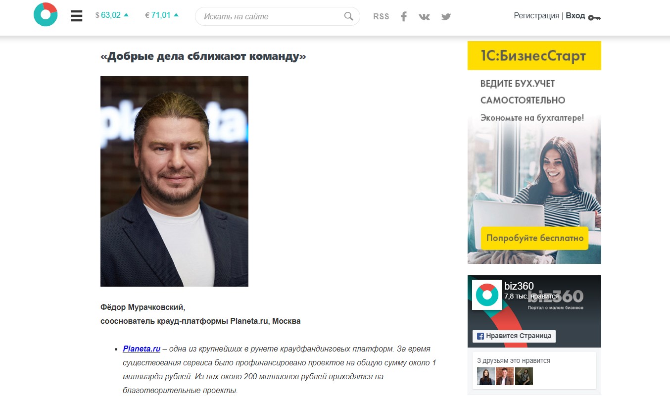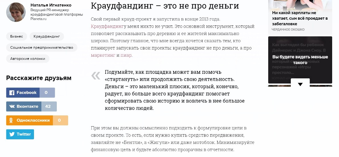 Я быстро опросила директора, написала комментарий от его имени, и через две недели мы уже читали историю создания платформа Planeta.ru в топовом издании.
