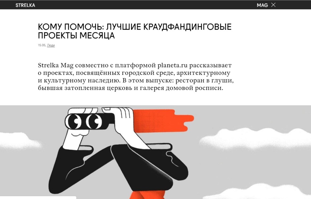 Например, для площадки Strelka Mag мы регулярно делаем подборки интересных проектов, посвященных городской среде, архитектурному и культурному наследию.