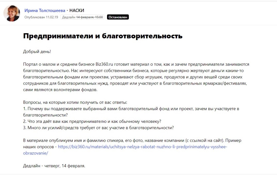 Способ 2. Мониторить запросы на сервисе Pressfeed и оперативно отвечать на них.