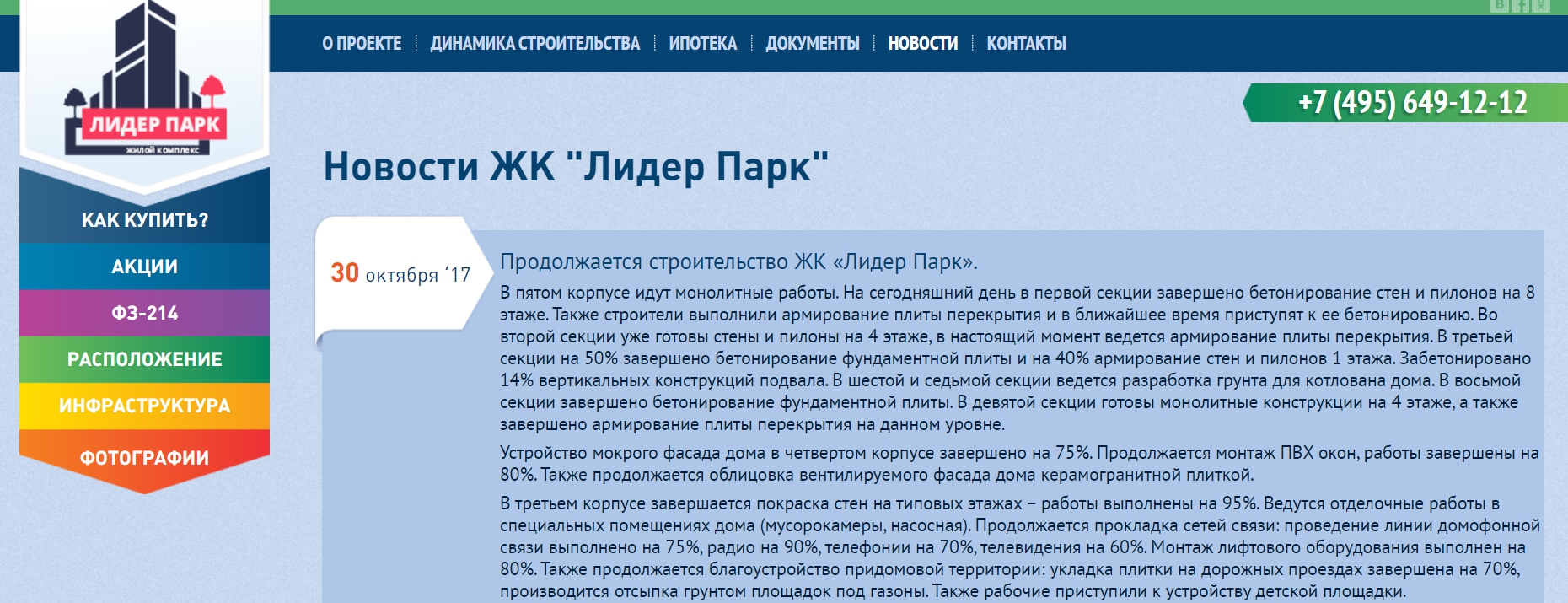 До старта пиар-кампании новости на сайте звучали примерно так: «Стройка завершена на 76%», «Стройка завершена на 85%». Эти новости не были конкретными и выпускались довольно редко, так как строительство шло медленно. Дольщики и потенциальные покупатели не понимали, что на самом деле происходит на площадке, сколько еще ждать сдачи дома.