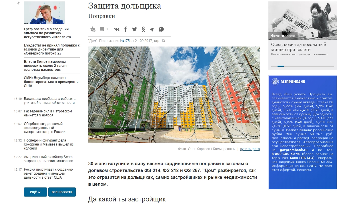 Или же участвовали в материале «Коммерсанта», который был посвящен поправкам к законам о долевом строительстве.