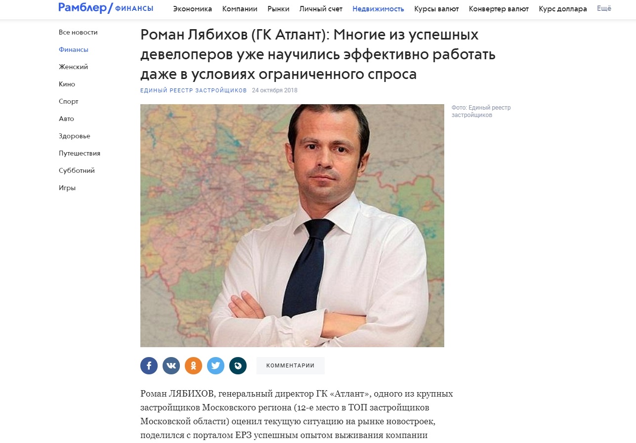 Интервью с Романом Лябиховым, которое вышло в «Едином реестре застройщиков» и на «Рамблер. Финансы»