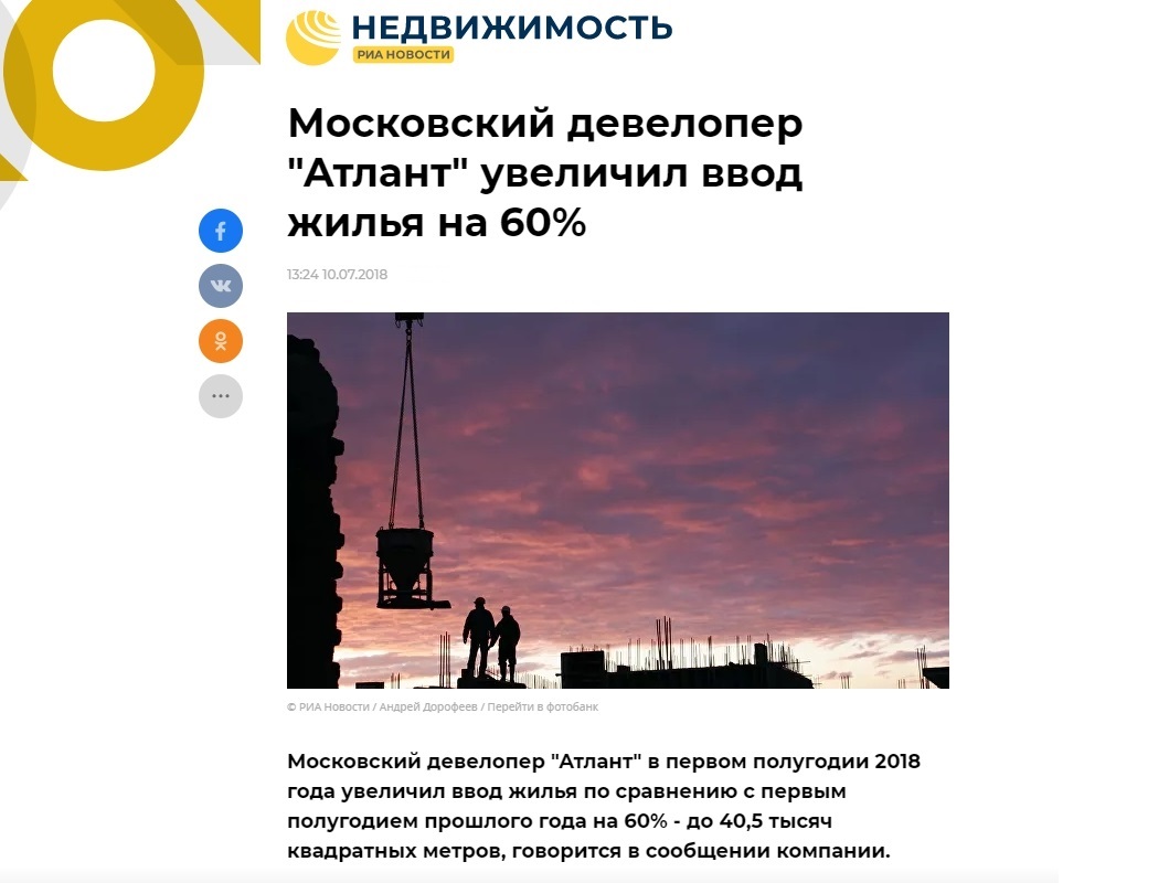 Так или иначе, чем больше упоминаний ГК «Атлант» появлялось на различных сайтах о недвижимости, тем проще было доказать общественности, что застройщик жив, он готов быть открытым и честно рассказывать о том, что происходит в строительной отрасли.