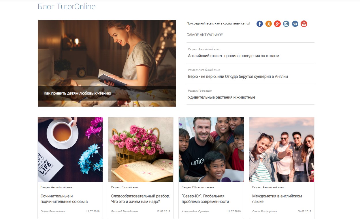 Главное преимущество собственного блога в том, что там нет никаких ограничений. Мы пишем на любые темы (связанные с образованием, конечно), в разных подачах, разных форматах. Это площадка для творчества. Публикуем там статьи по разным предметам, в планах выпускать больше контента для мотивации, вдохновения. Есть отдельная рубрика «Полезные советы для родителей».