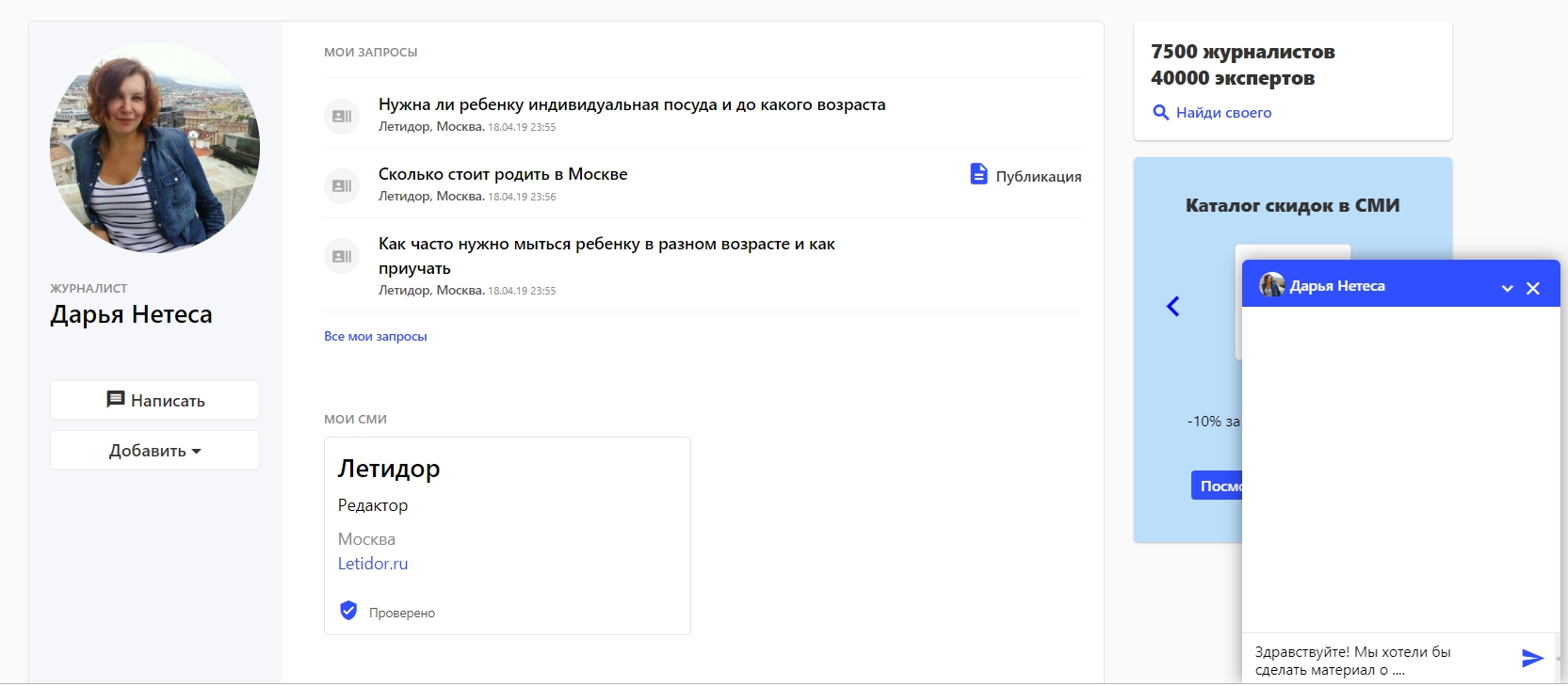 Через сервис Pressfeed подружились с отраслевым изданием для родителей «Летидор», в дальнейшем площадка стала нашим постоянным партнером.