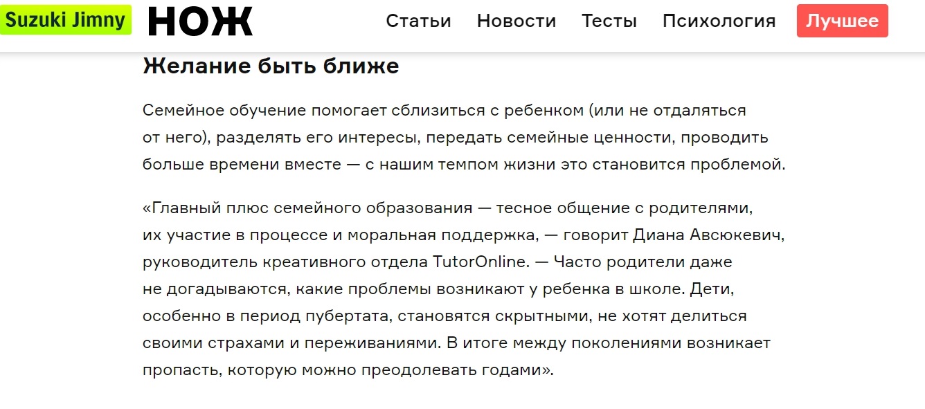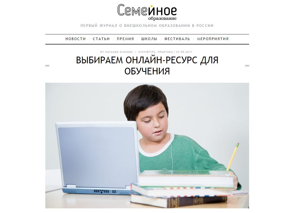 Для сайта «Семейное образование» наш специалист написал статью о том, как выбрать ресурс для домашнего обучения. С этой площадкой работали напрямую: заранее обсудили, какие тематики там ещё не освещали и сделали совместный материал.