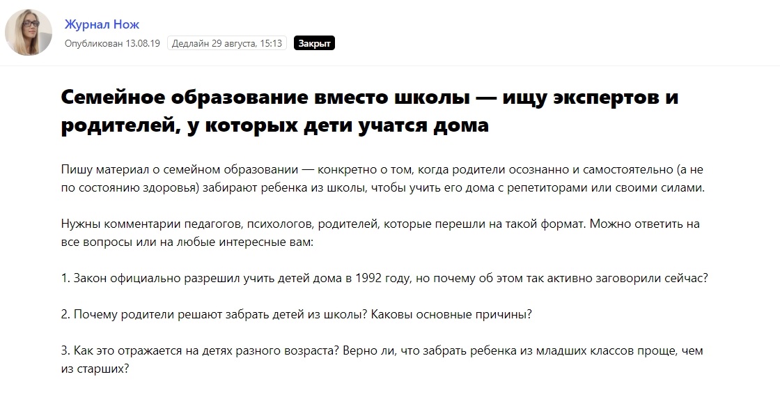 И теперь мы вновь используем сервис Pressfeed, но уже как журналисты. То есть на платформе ищем экспертов для некоторых статей. Например, мы хотели собрать мнения на тему, как говорить с детьми о деньгах и с самого детства приучать их к финансовой грамотности.