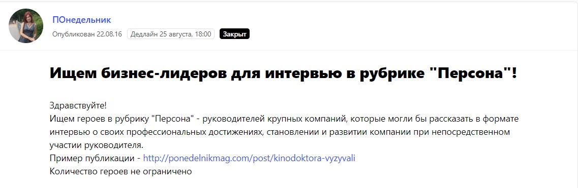 Во-вторых, мониторили и отвечали на актуальные для нас запросы журналистов на сервисе Pressfeed. Это платформа, на которой журналисты и редакторы ищут экспертов для публикаций. Всего там зарегистрировано более 4,5 тысяч изданий, которые ежедневно публикуют там запросы с информацией ㅡ какой эксперт им нужен для будущей статьи, на какие вопросы нужно ответить, до какого срока принимаются заявки. При этом обычно журналисты ждут комментарии, а редакторы ищут авторов для полноценных текстов. Регистрация на сервисе бесплатная, но на базовом аккаунте есть некоторые ограничения — например, запросы появляются позже, а также можно ответить всего на 3 запроса в месяц. Это очень мало, если вы хотите достигнуть каких-то значимых результатов с помощью выходов в СМИ.