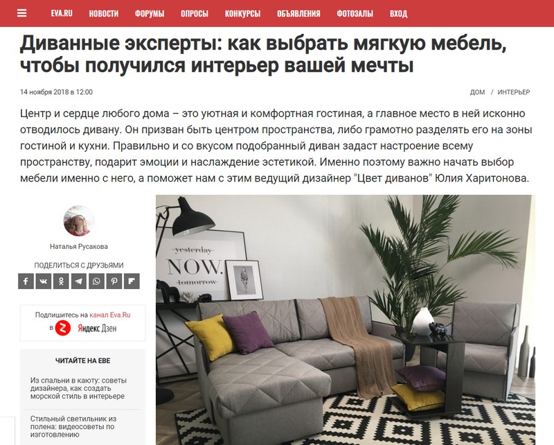 При этом практически все наши потенциальные покупатели — активные потребители контента. Дело в том, что мягкая мебель — это покупка долгосрочного характера. Диван или кресло будут служить владельцу годами, поэтому принятие решения может занять время. Перед тем, как определиться с выбором, многие покупатели тщательно изучают варианты, собирают мнения семьи и знакомых, оценивают репутацию компании. Клиенты ищут не только качественный товар, но и индивидуальный подход, высокий уровень сервиса и позитивный покупательский опыт. Так что мы стараемся присутствовать в тех медиа, которые читают наши клиенты для того, чтобы сделать осознанный выбор. Мы рассказываем о трендах, даем советы, помогаем с информацией.